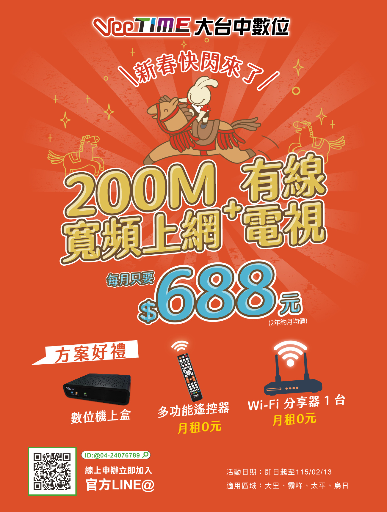 新春快閃來了✨200M上網+看電視✨每月只要688元