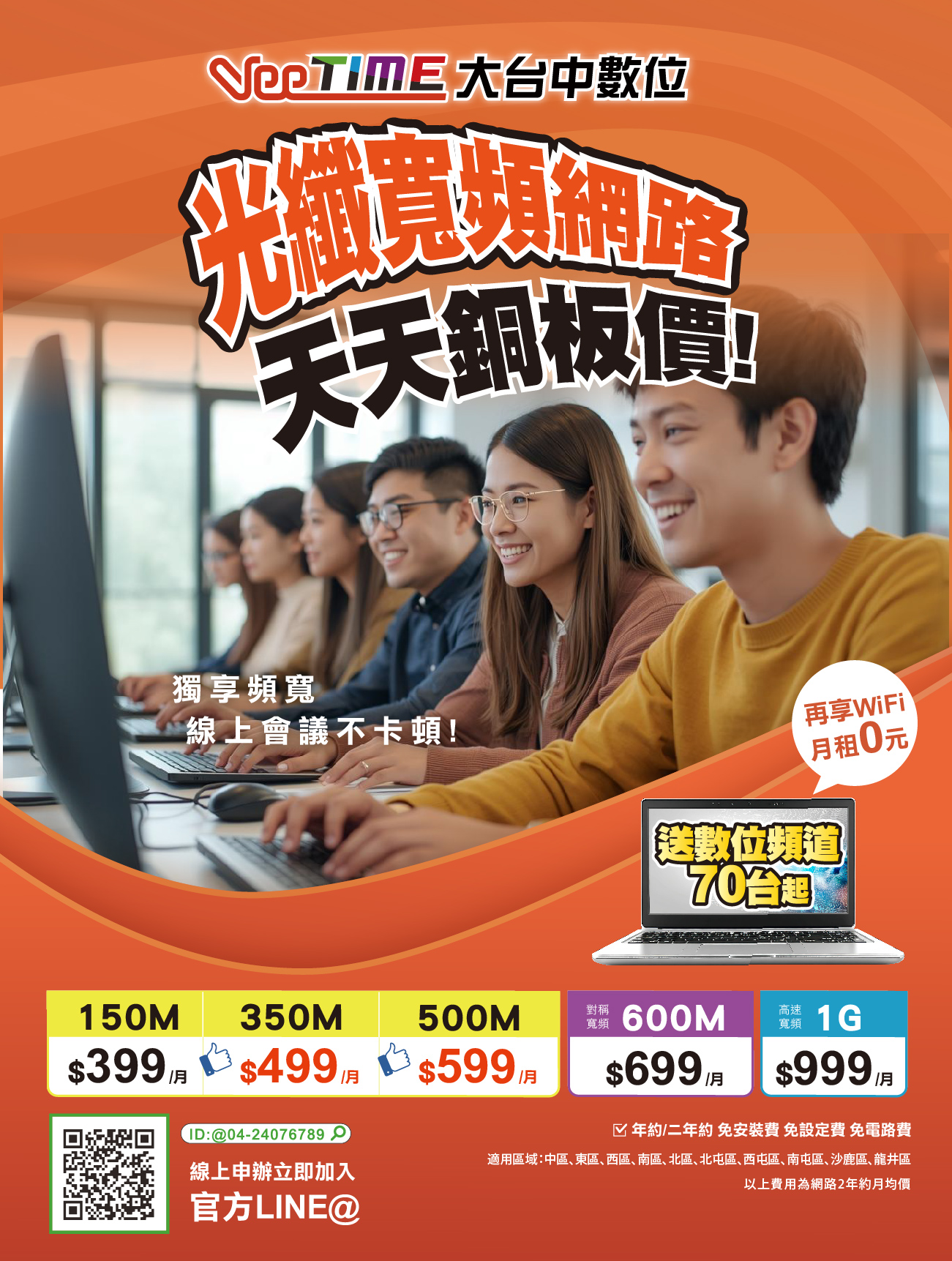 ✨網速飆起來天天銅板價✨送數位頻道70台起再享WiFi月租0元
